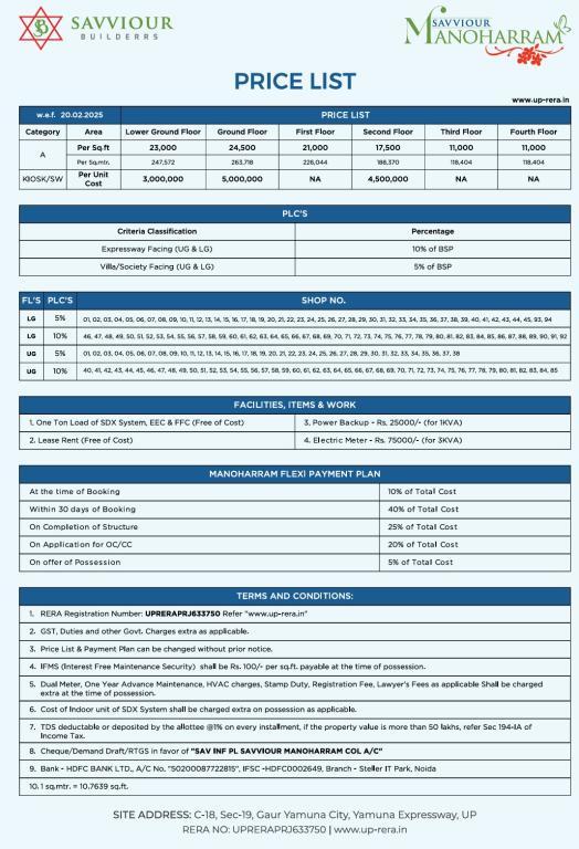 • Developer: Saviour Builders • Location: C-18, Gaur Yamuna City, Yamuna Expressway, Greater Noida • Project Area: Approximately 1.23 acres • Structure: G+4 floors with diverse commercial offerings