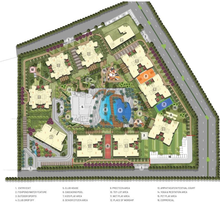 ��️ Amenities Jade County offers a comprehensive range of amenities designed to enhance the quality of life for its residents: • 55,000 sq.ft Clubhouse • Swimming Pool • Gymnasium • Children's Play Area • Jogging and Cycling Tracks • Yoga and Meditation Garden • Multipurpose Hall • Rainwater Harvesting • 24x7 Security with CCTV Surveillance • Power Backup • High-speed Elevators • Amphitheatre • Senior Citizen Sit-out • Tennis Court • Library