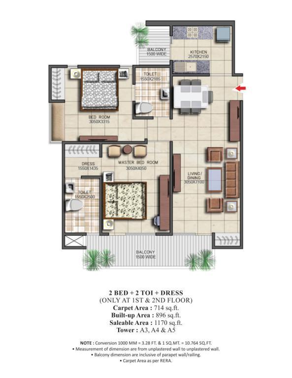 ��️ Configuration & Prices Unit Type Size (sq ft) Price Range 2 BHK 890–1,180 ₹40 L–68 L builder price 3 BHK 1,365–2,125 ₹61 L–95 L 4 BHK 2,480 Up to ₹1.11 Cr Elite Low Rise (Phase II) 1,579–1,784 From ~₹1.50 Cr