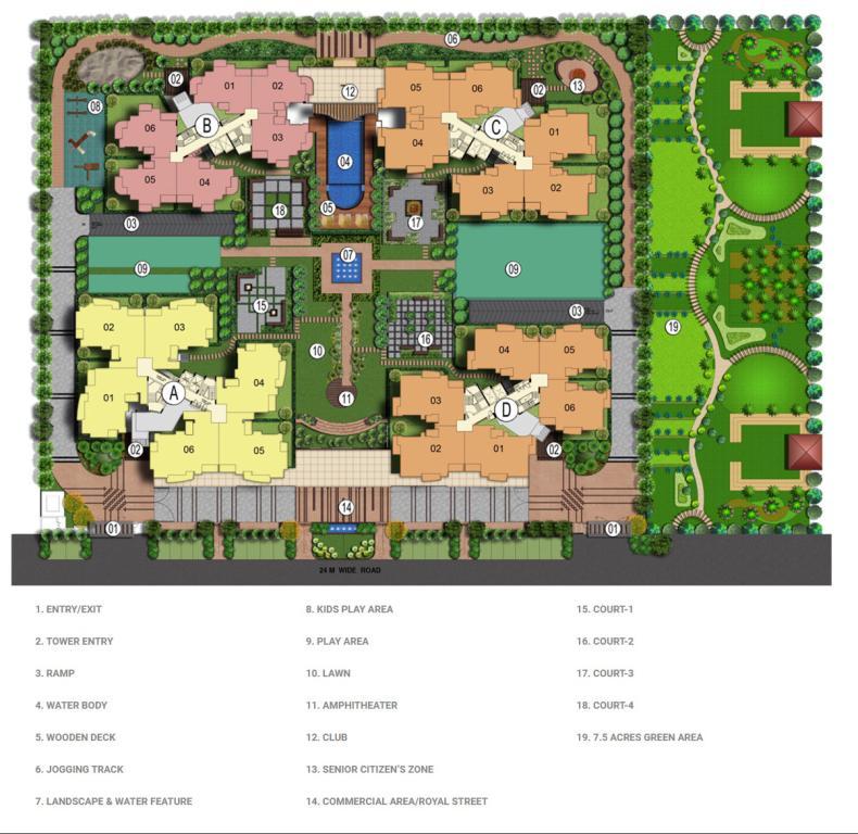 �� Amenities & Lifestyle • Green & health features: Landscaped gardens, gazebo, water bodies, Zen parks, skating rink, jogging & cycle track • Club facilities: International-class health club/gym, large clubhouse, multipurpose hall, & amphitheate • Sports & recreation: Swimming pool (with toddler pool), indoor & outdoor game courts (badminton, basketball), indoor games section . • Wellness zones: Yoga & meditation area • Security & utilities: 24×7 security with CCTV, intercom, power backup, fire safety, sewage treatment, rainwater harvesting • Home finishes: Vitrified/ceramic flooring, anti-skid balconies, wooden floors in master bedroom, modular kitchens, premium fixtures