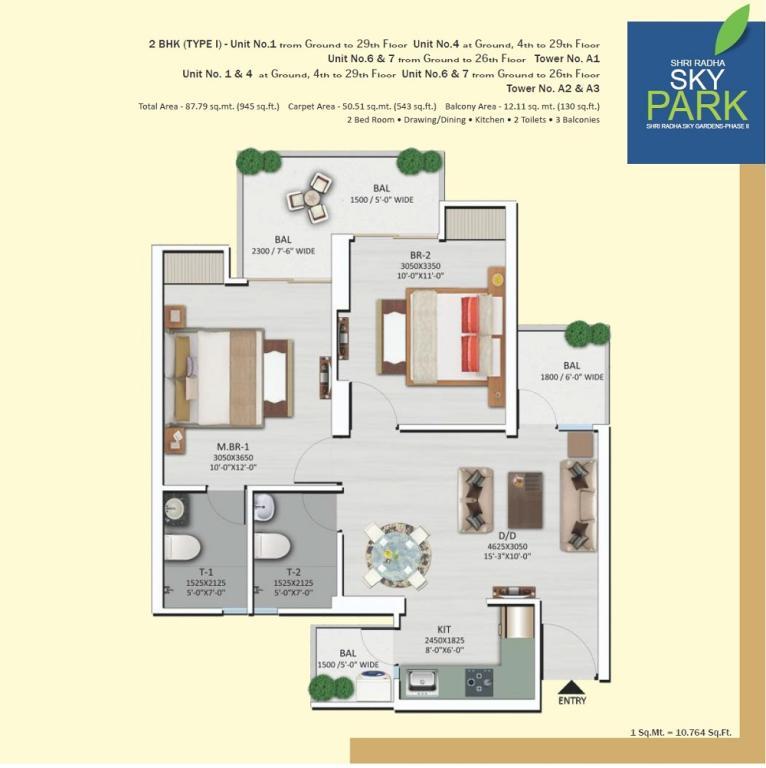 �� Apartment Configurations & Pricing • Offers 1 BHK (570–599 sq ft), 2 BHK (870–945 sq ft), 3 BHK (1,095 sq ft) layouts • Builder pricing: o 1 BHK from ~₹15–22 L o 2 BHK ~₹26–36 L o 3 BHK ~₹41 L onward