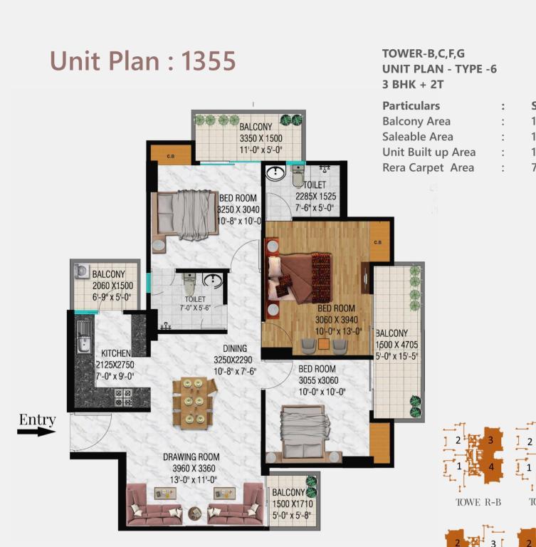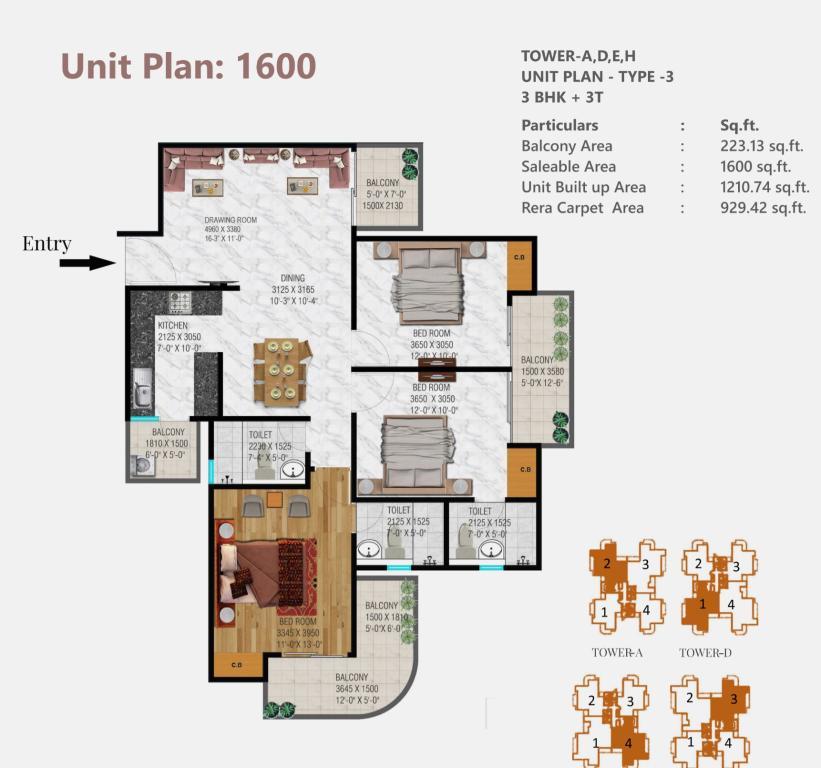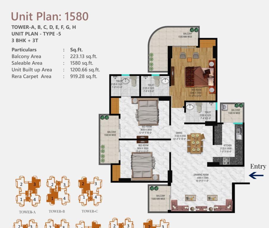 �� Apartment Layouts & Pricing • 3 BHK + 2T (1,355 sq ft): starts ~₹1.43–1.49 Cr • 3 BHK + 3T (1,580–1,600 sq ft): ~₹1.67–1.73 Cr • 3 BHK + 3T + Study (1,895 sq ft): ~₹2.08 Cr • 4 BHK + 5T + Servant (2,450 sq ft): ~₹2.59–2.69 Cr