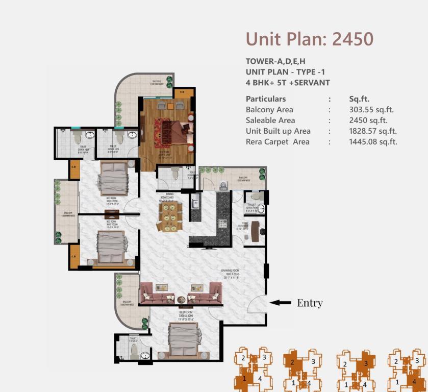 �� Apartment Layouts & Pricing • 3 BHK + 2T (1,355 sq ft): starts ~₹1.43–1.49 Cr • 3 BHK + 3T (1,580–1,600 sq ft): ~₹1.67–1.73 Cr • 3 BHK + 3T + Study (1,895 sq ft): ~₹2.08 Cr • 4 BHK + 5T + Servant (2,450 sq ft): ~₹2.59–2.69 Cr