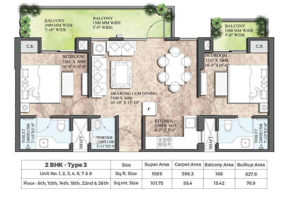 �� Unit Types & Pricing Type Size (sq ft) Indicative Price 2 BHK ~890–1,105 ₹49 L – ₹60 L 3 BHK ~1,175–1,865 ₹80 L – ₹1.03 Cr • Builder-listed per sq ft rate ranges from ₹2,790 to ₹3,190 depending on the configuration