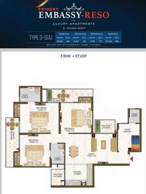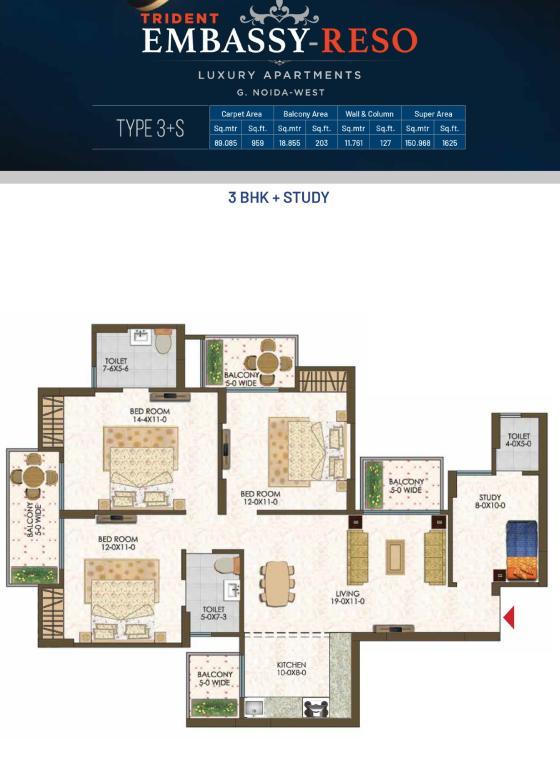 Trident Embassy Reso (commonly called Trident Reso) in Sector 1, Greater Noida West (Noida Extension):