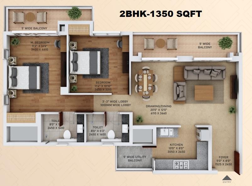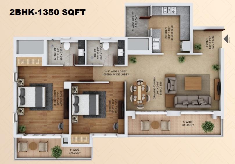 Project Essentials • RERA-approved under UPRERAPRJ677294 • Plot size: ~6.8 acres (27,496 m²), developed as a low-density community with just 5 towers and ~492 units Configuration: Spacious 2 BHK (≈1,350 sq ft) and 3 BHK (≈1,775 sq ft) • Floors: Towers rise up to 26–28 floors • Possession timeline: Expected around April 2025