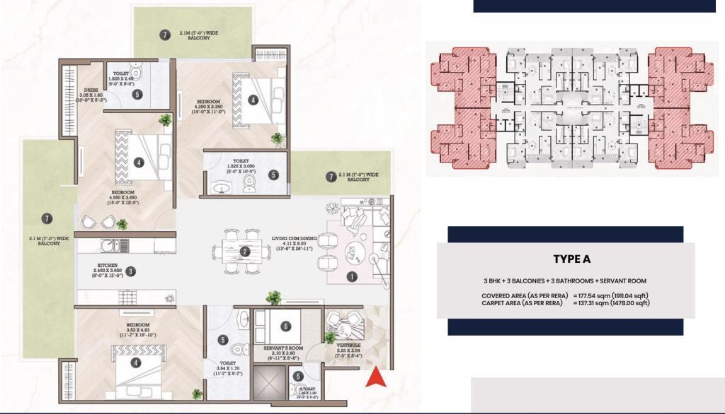 �� Units & Pricing • Typology: 3 BHK apartments (~1,426–1,470 sq ft carpet area) • Price Range: ₹1.3–1.35 Cr (~₹89–₹92 per sq ft)