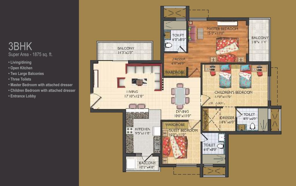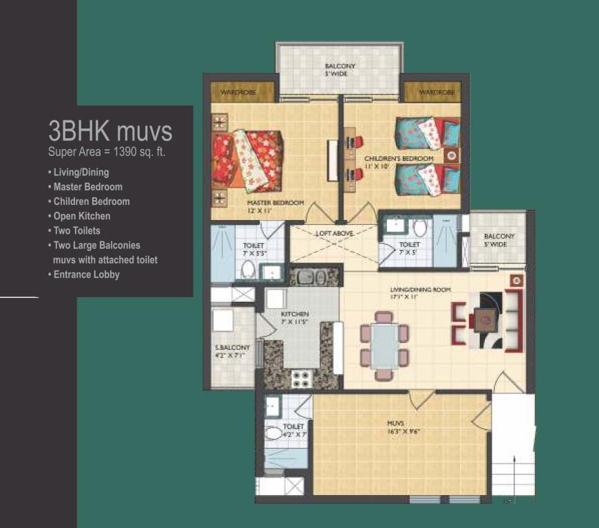 • Green & Open Spaces: ~70% open area, landscaped gardens, water bodies here and across adjacent park (~11 acres) • Sports & Recreation: Clubhouse, gym, pool, tennis & basketball courts, jogging track, amphitheatre, kids’ play area • Utilities & Safety: 2-level parking, power & water backup, CCTV, intercom, fire-safety, security staff, rainwater harvesting, STP • Unique Feature: MUVS – multi-utility variable living spaces for flexible usage