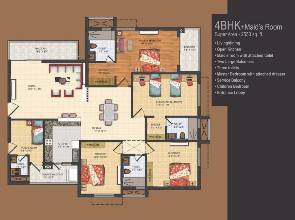 Configuration Area (sq ft) Base Price 2 BHK ~990 ₹54.45 L – ₹75 L 3 BHK ~1,390 – 2,000 ₹76.45 L – ₹1.10 Cr 4 BHK ~2,550 ₹1.27 Cr – ₹1.40 Cr • Price range generally ₹5.4k–₹8.2k per sq ft; SquareYards notes ₹8,200/sq ft average