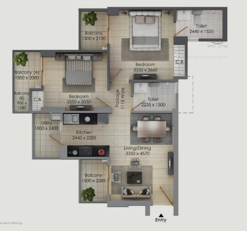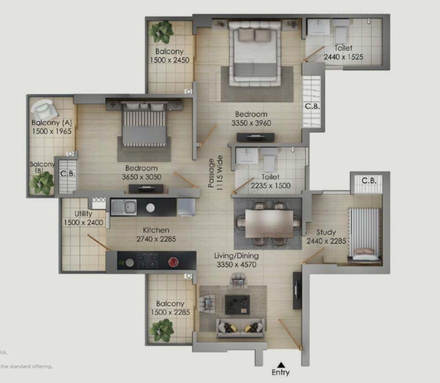 �� Apartment Details & Pricing Type Super Built-up (sq ft) Price Range* 2 BHK + 2T 1,025 ₹1.23 Cr (~₹1.30 Cr) 2 BHK + 2T + Study 1,160 ₹1.39 Cr (~₹1.42 Cr) 3 BHK + 2T 1,355–1,370 ₹1.76–1.82 Cr (~₹1.72 – 1.87 Cr) 3 BHK (largest variant) 1,475 ₹1.92 Cr (~₹1.87 Cr) *Indicative builder prices—resale rates may differ depending on availability.