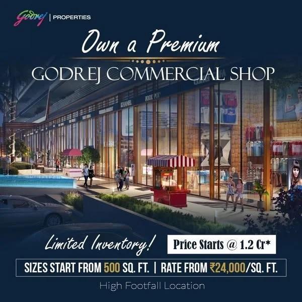 �� Timeline & Key Data Detail Information Land Area ~3.5 acres Structure G + 3 commercial complex Unit Sizes 400–1,000 sq.ft. Price Range ₹1.10 Cr* to ₹3.50 Cr* Ownership Brand Godrej Properties Ltd. RERA No. UPRERAPRJ839208 (fresh in 2025) Possession Expected Circa April 2030 (some sources say Sept 2029) *Prices are indicative and subject to final confirmation.